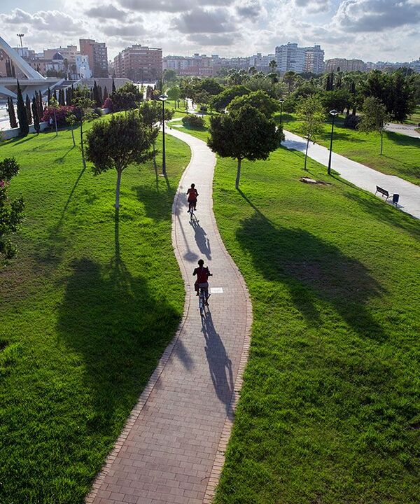 Imposible no empezar por el Jardín del Turia, un parque lineal de más de 9 km que recorre Valencia de oeste a este, desde el Parque de Cabecera hasta la Ciudad de las Artes y las Ciencias. Ocupa el antiguo cauce del río Turia, desviado tras una gran riada, y hoy es uno de los espacios verdes urbanos más grandes de España.
